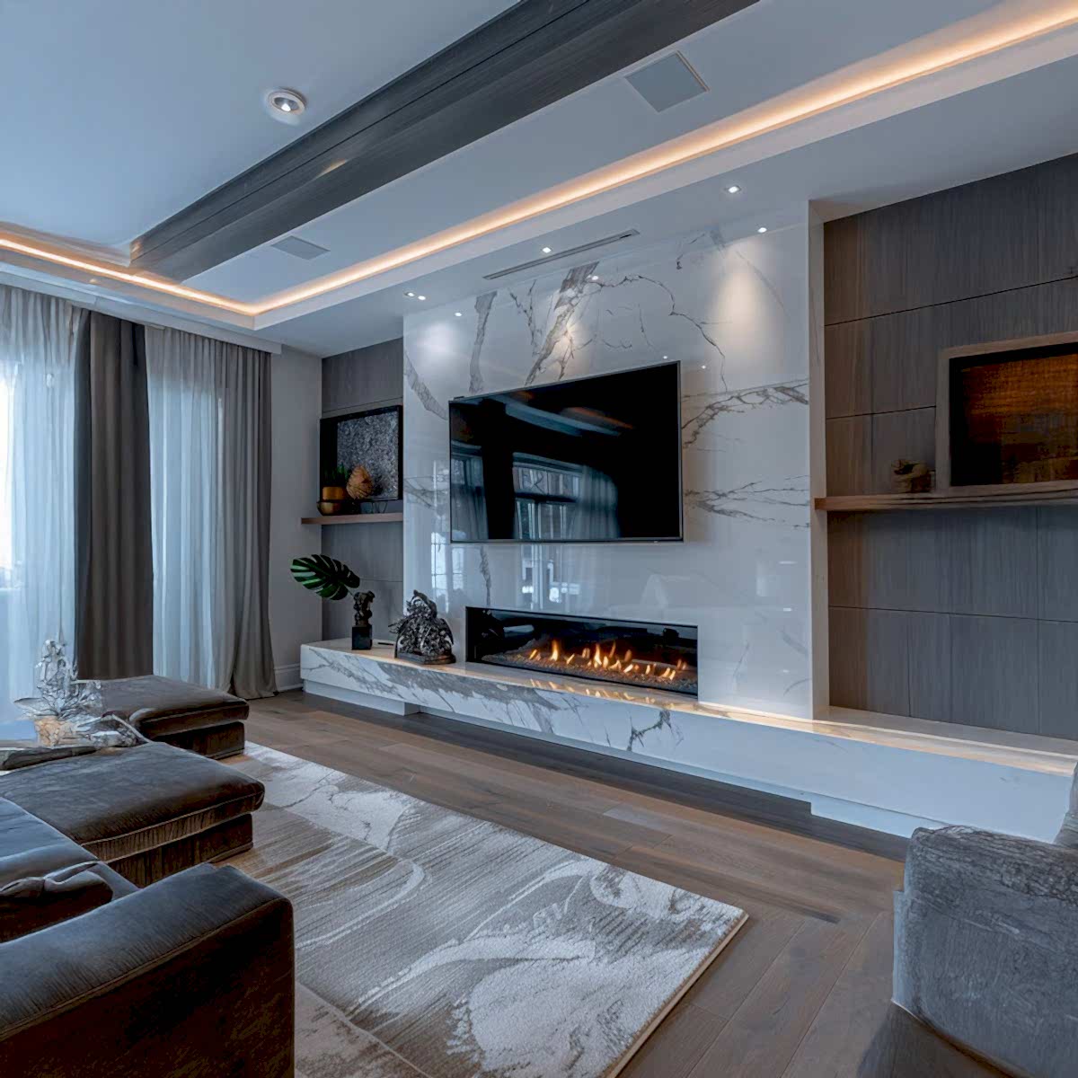 Gazalpin 120 Düz Ekran Modern Mermer Şömine